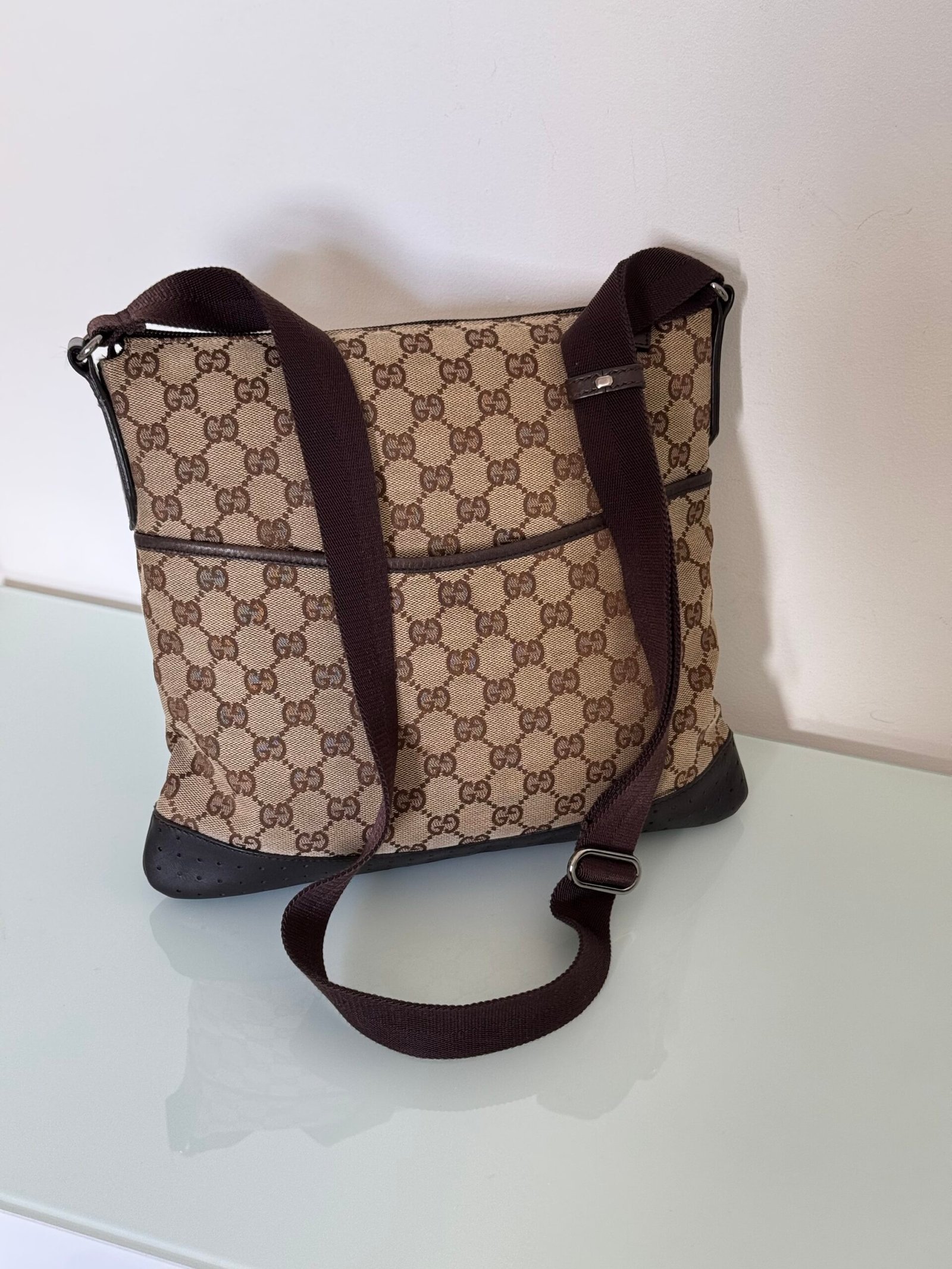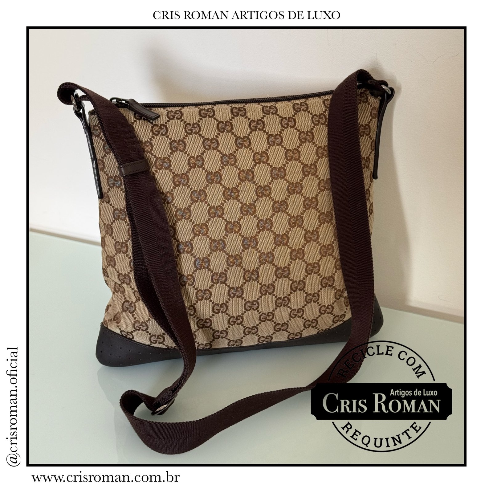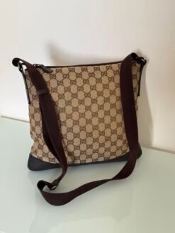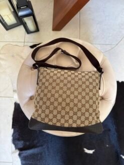 Bolsa Gucci messenger em tecido monograma e couro