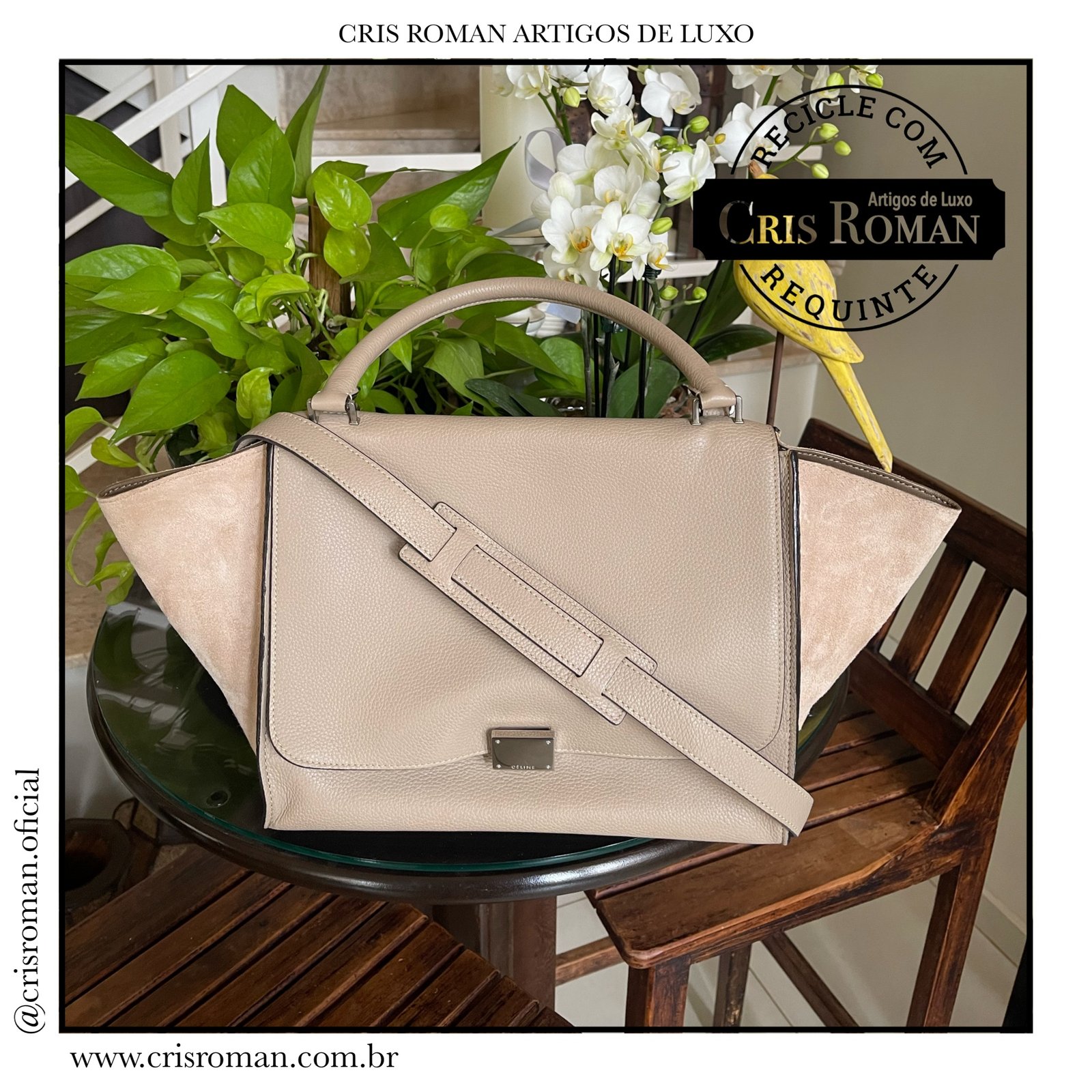 O @crisroman.oficial é um brecho online de luxo que oferece aval de autenticidade em todos os itens vendidos.